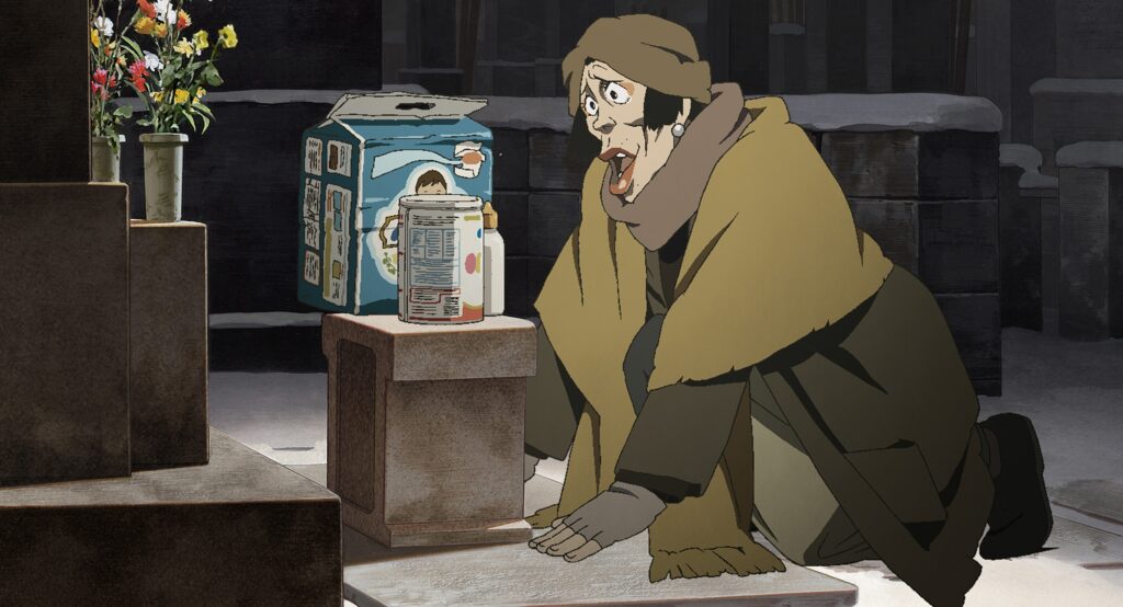 アルコール依存症の中年男性のギン、家出少女のミユキ、元ドラッグ・クイーンのハナは、東京の路上で疑似家族としてホームレス生活を送っていました。クリスマスイブに食べ物を求めてゴミを漁っていると、ゴミ箱の中に捨てられた赤ちゃんを発見します。赤ん坊の身元を知る手がかりはわずかしかなく、社会に適応できない3人は赤ん坊を親の元に返そうと、助けを求めて東京の街を探し回ります。アニメ映画の傑作として有名なこの作品は、路上での協力を描いた素敵な物語です。